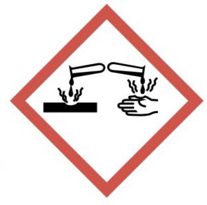 Se trata de un peligro físico y/o para la salud ya que puede ser corrosivo para los metales y/o provocar quemaduras graves en la piel y lesiones oculares graves.