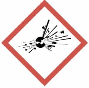 El pictograma con la bomba explosionando indica que el producto es explosivo en caso de calentamiento. Los productos que contengan este pictograma pueden explotar por efecto del calor (50oC) o por contacto, rozamiento o choques con otros productos.