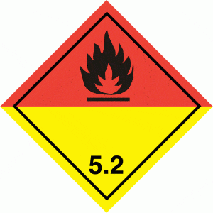 Es el etiquetado obligatorio para catalizadores y reactivos utilizados en la industria del plástico, resinas y síntesis química. Debido a su inestabilidad, muchas etiquetas 5.2 van acompañadas de la marca de «Alejada del calor» o requieren transporte en vehículos refrigerados con control de temperatura constante.