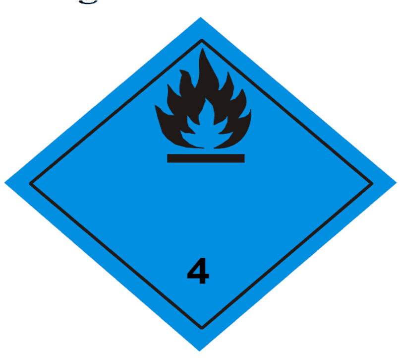 La función primordial de esta etiqueta azul es dictar una estiba seca y hermética. Los bultos deben mantenerse en envases estancos y protegidos de la lluvia o la condensación. En caso de accidente, esta señal es la advertencia de «Vida o Muerte» para los bomberos; les indica que deben utilizar agentes extintores especiales, como polvos químicos secos o arena, evitando el uso de mangueras de agua que sólo agravarán la catástrofe.
