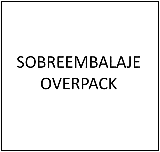 • Diseño: Texto claro indicando “Sobreembalaje” o “Overpack” junto con espacio para colocar etiquetas de clase correspondientes